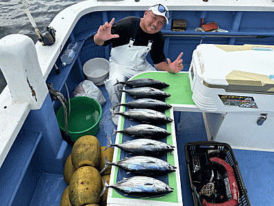 キハダ・キメジもアタリ良くGET!!キハダのアタリも10発以上ありました。
