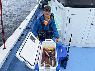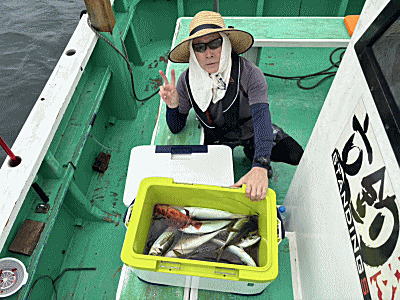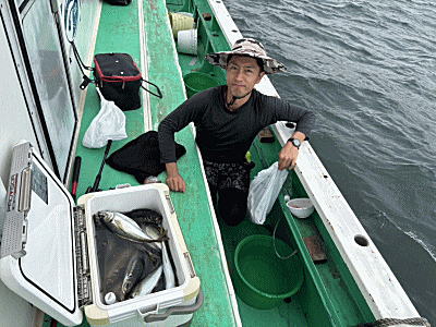 早朝小雨も出船時には止み、その後は曇りで一時晴れ間も、涼しく過ごし易い海。