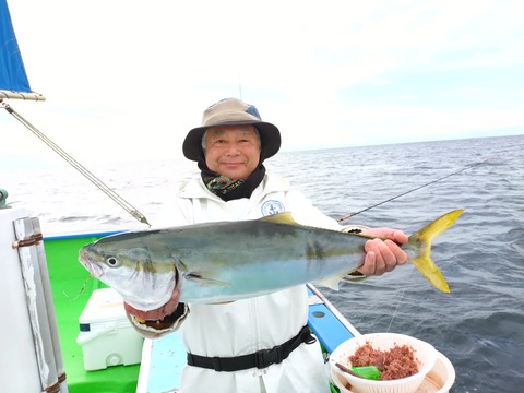 キハダの反応船下入るもアタリ無く、カツオの顔見た程度でした。