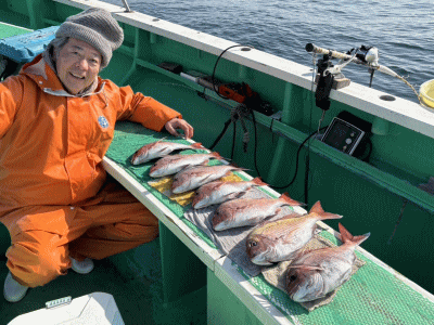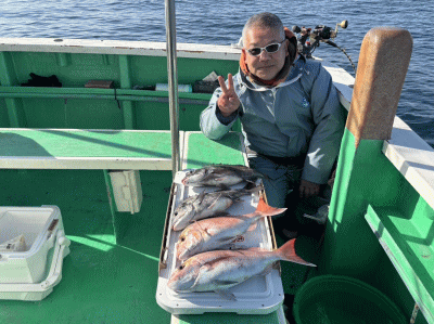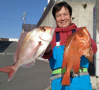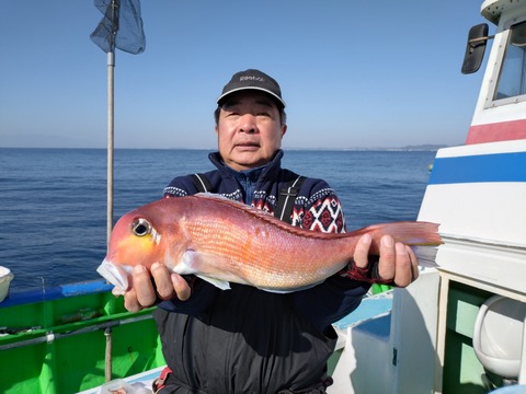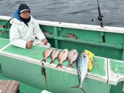 佐島・志平丸 マダイ船 1月19日 マダイ 0~2枚 0.4~0.9kg イナダ 0~2本
