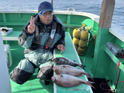 佐島・志平丸 マダイ船 1月18日 マダイ 船中 1枚 0.4kg イナダ キントキ ホウボウ サバ