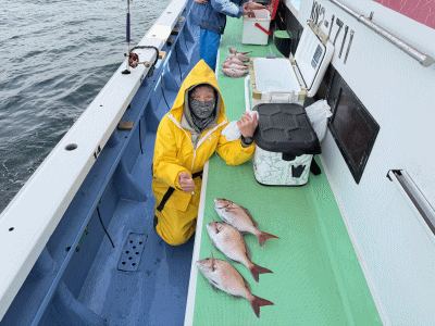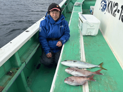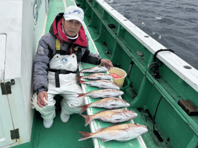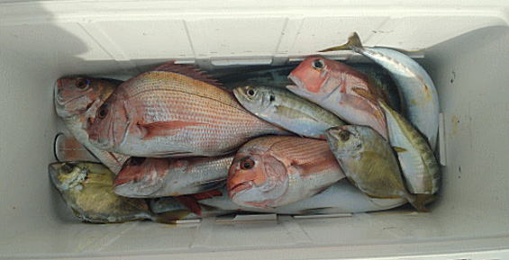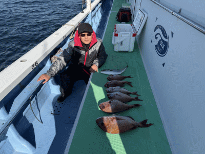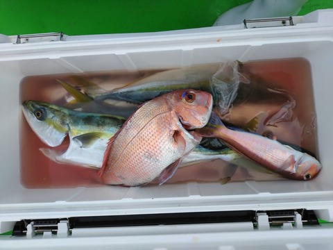 マダイ 0~2枚(船中5枚) マアジ 2~4尾 25~32cm サバ キダイ アカボラ カイワリ