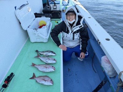 金沢八景・太田屋 マダイ船 2月17日 マダイ 2~14枚