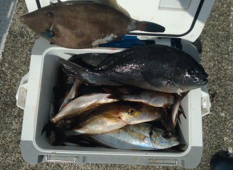 メジナ 0~10尾 0.4~1.2kg マバタ 1.7kg マダイ 0.4kg ウマヅラ イラ アジ