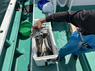 アジ 4~10尾(3人) 27~38cm メジナ 0~3尾 0.4~1.0kg マダイ イラ ウマヅラ 大・中サバ