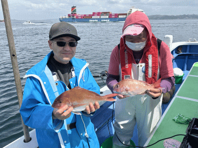 松輪・大松丸 マダイ船 4月17日 マダイ 0~5枚 0.8~2.5kg 2隻の高低