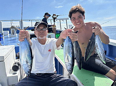 ![]() ![]() ![]() イサキは良型主体! シマアジ、カツオ、マハタ などいろいろと釣れてくれました。 |
