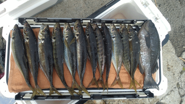 メジナ サバ ウマズラ イサキは反応の動き速く当たり続かず各ポイントで拾い釣。その変わりマアジは機嫌良く良型主体!