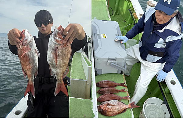 大型マダイ浮上!最大5.2㎏!!他2~3㎏級も揚りました!トップは3枚!