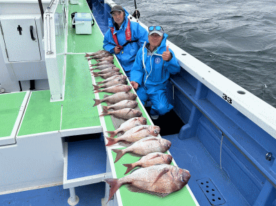 松輪・大松丸 マダイ船 4月7日 マダイ 2~10枚(2番手8枚) 0.8~3.0kg 南西風が強く10時30分早上り