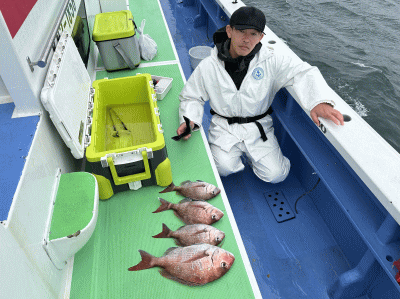 金沢八景・太田屋 マダイ船 4月 6日 マダイ 0~4枚 ~2.0kg