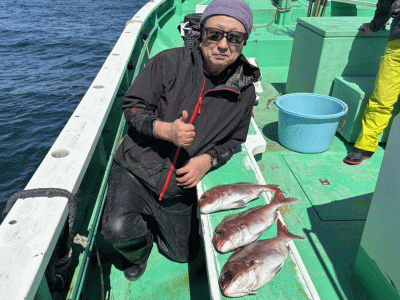 松輪・大松丸 マダイ船 4月9日 マダイ 0~4枚 0.8~3.5kg 3隻の高低