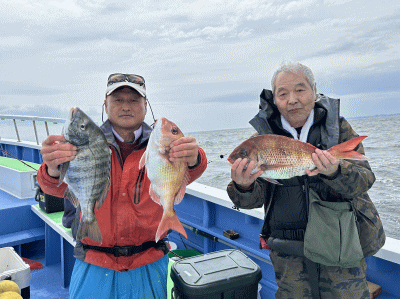 松輪・大松丸 マダイ船 4月 6日 マダイ 0~3枚 0.8~5.2kg クロダイ ワラサ 3隻の高低