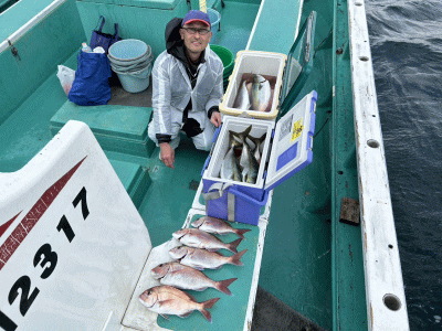 佐島・志平丸 マダイ船 11月14日 マダイ 1~5枚 0.4~2.9kg