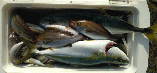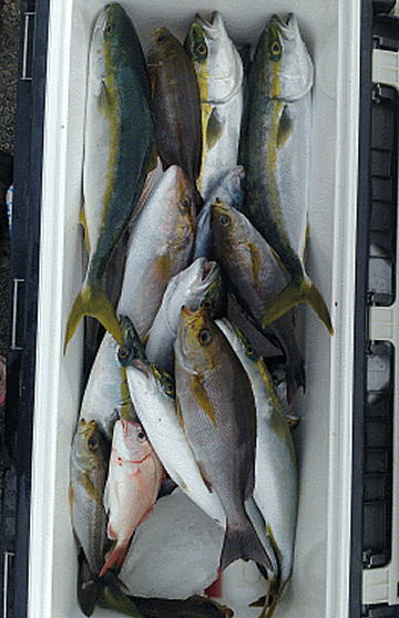 カンパチ 0~1尾 メジナ 0~2尾 ウメイロ ハナダイ 小アジ ヒラソーダ