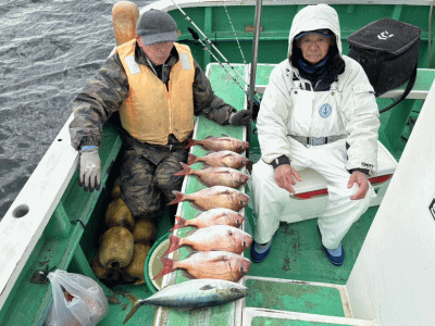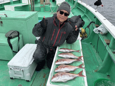 松輪・大松丸 マダイ船 3月11日 マダイ 0~5枚 0.8~1.8kg 2隻の高低
