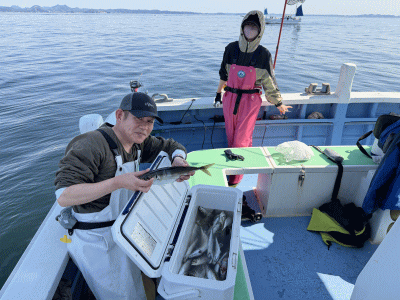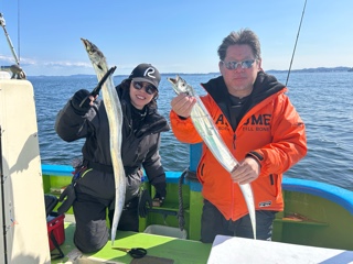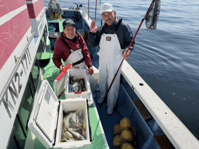 ![]() 今季初のザブトン級浮上! 4.6㎏迫力の1枚。 2.2kg 1.2kgヒラメと呼べるサイズ |