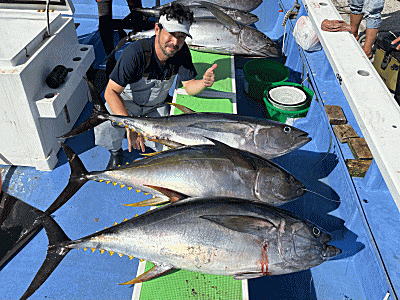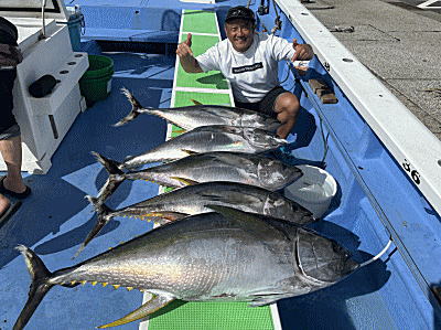 ![]() 茅ヶ崎・まごうの丸 2025年8月1日(金曜)からの 本ガツオ/キハダ船のご予約を受付中です! 本ガツオ/キハダ船 出船時間:5時50分 料金:13.500円(コマセ・付けエサ・別.) 女性/¥10、500円・子供/¥110,000円.(子供は15歳まで) 女性・子供は他の割引・サービスとの併用は出来ません。 【5時30分には、受付を済ませ乗船出来るようにお越し下さい.】 2024年 ![]() ![]() ![]() 2025年8月1日からの 本ガツオ/キハダ船のご予約を受付中です! ※HPの釣座の表を見てご予約して下さい。 ※21号船の釣座が増えて来るようでしたら 別船もご予約をお受けします。 ※コマセ釣り・ルアー・エビング・など、5人・6人以上のグループの 場合にはご確認下さい。 仕掛/カツオ・キハダ用の仕掛はお店での販売あり. コマセ/3k・1.5kはお店で販売あり. 付エサ/お店で販売あり. ※レンタル/有料. 竿・キーパーセット/(有料.) 本ガツオ用(¥3000円.) キハダ用(¥4000円.) ※レンタルロッドは折って仕舞いますと 追加料金が、6000円〜7000円がかかって仕舞います。 コマセカゴ/¥3000円(有料.) キーパー/¥2000円(有料.) ※キーパーを落としてしまうと、追加料金10000円掛かって仕舞います。 茅ヶ崎 まごうの丸 茅ヶ崎市南湖 6-18-7 tel 0467-85-9013のみ |