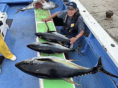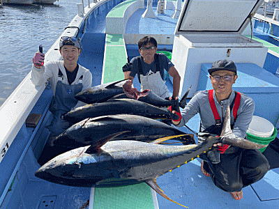![]() 松輪・大松丸 マグロ・カツオ船、 8月 1日(金曜)から開始 2024年8月6日(火曜) ![]() ![]() 2024年8月7日(水曜) ![]() ![]() 出船時間:5時30分・ 料金: 12,500円・ エサ別 オモリ・・・100号 マグロ用ハリス 22~30号、3~4m カツオ用ハリス 14~18号、3m 誘導天秤は禁止です。 ご予約お待ちしてます 大 松 丸